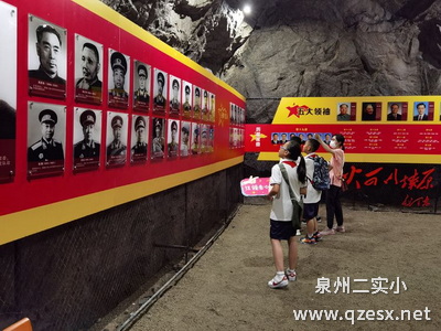7月10日上午,四(3)中队组织雏鹰假日行动共同参观位于清源山脚下的红色主题人工岩洞隧道——镜山书院里的1977防空洞。
