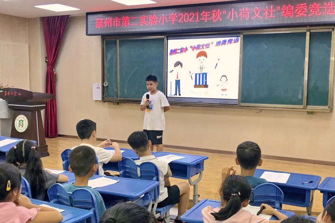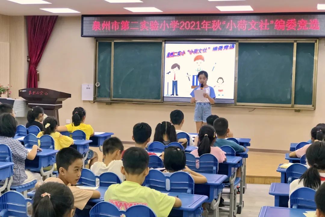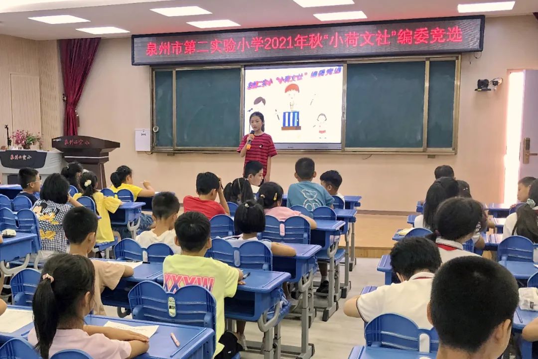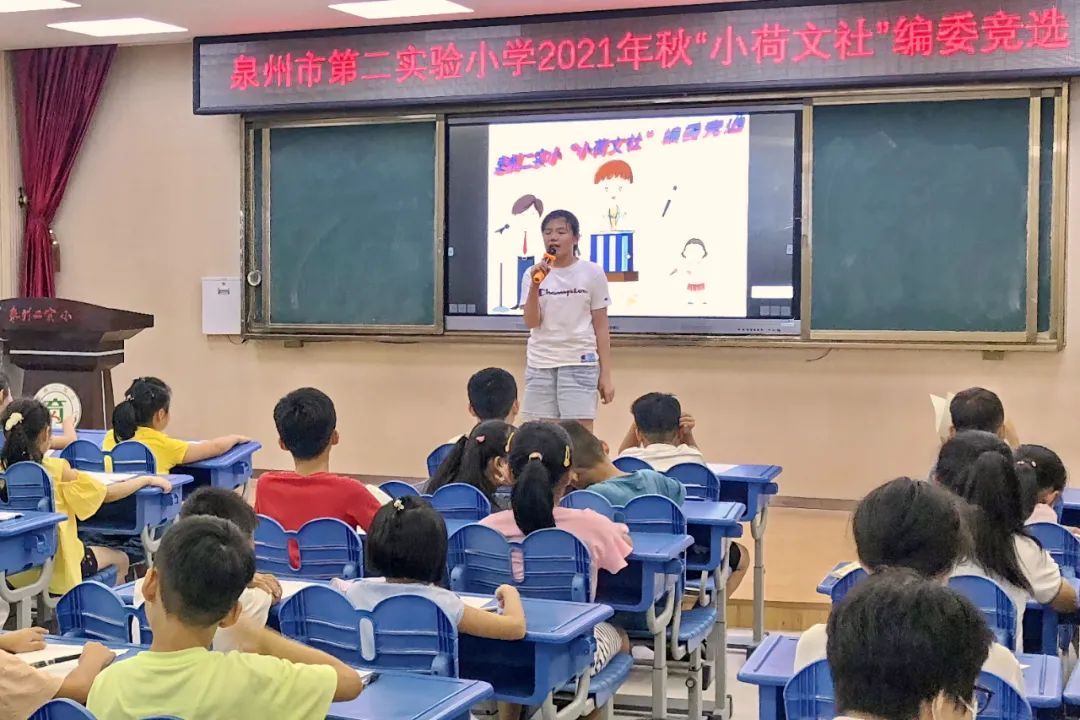 “小荷才露尖尖角,早有蜻蜓立上头。”新学年伊始,我校“小荷文社”的各项文学活动又活跃起来了。9月7日,文社100多名社员齐聚学校一楼多媒体教室,举行新一届编委竞选演讲活动。本次活动共有35名社员上台进行竞选演说。 社员们各显身手,充满激情地展示各自在阅读、写作等方面所取得的成绩及对文学的热爱,热情洋溢地表达了参与《小荷文社》编审工作的积极性和责任感。他们用大方自信的台风,绘声绘色的演讲,并配合PPT展示,尽情地演绎着各自的精彩,出色的表现赢得大家阵阵热烈的掌声。 与此同时,台下的社员们也在认真思考,郑重地给心仪的选手投票。经过全体社员的投票和工作人员的统计核实,最终选出李亦瑄、陈李安、郑舒文、叶兆丰、林翰惟、庄梓扬、傅柏涵、王楚妍、周纾䌊、肖然、蔡煜凯、廖泽楷、庄云起、杨子萱、黄弘毅、林承锐等16位同学组成新一届的编委会成员,同时吸收三年级王梓欣、吴禹诺等24名新社员加入文社。 新当选的小编委们纷纷表示要齐心协力,营造良好的文学氛围,引领同学们尽情地遨游文学星空。小荷文社负责老师姚雅丽也勉励大家积极参与文社组织开展的讲座、采风、交流等活动,不断拓展视野,提升自己的写作水平和文学素养。