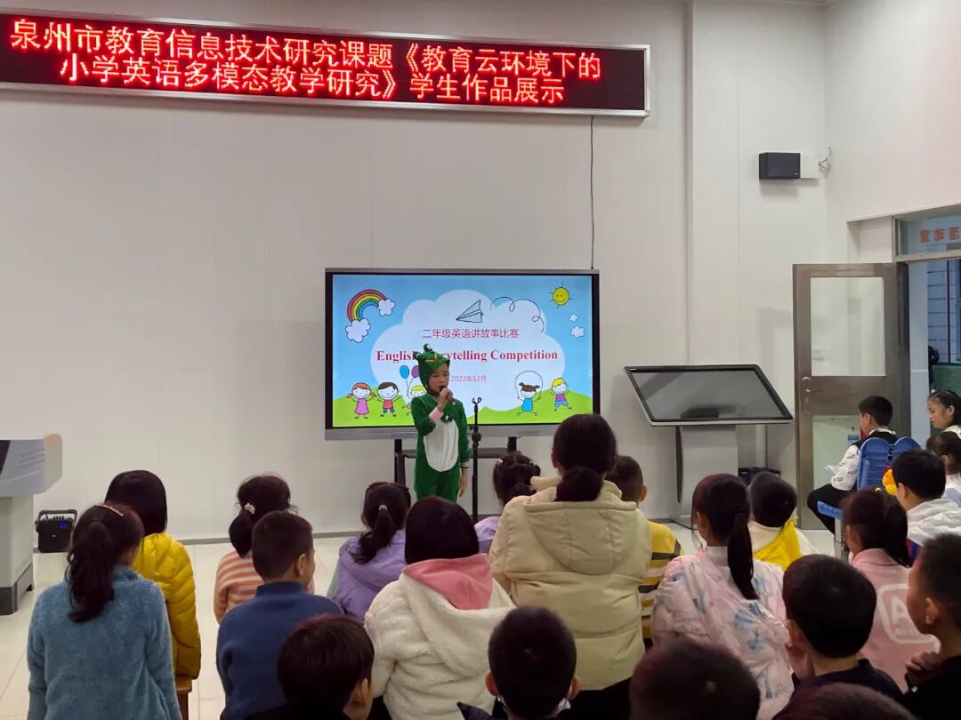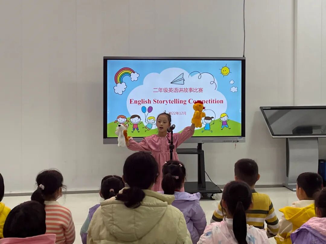 看似简短的英语故事包含着耐人寻味的人生哲理,蕴含着英语世界的精彩文化,它是孩子们了解外国文化的小小窗口。一、二年级的孩子们用响亮的声音,丰富的语言神态,标准清晰的语言向我们娓娓道来一个个趣味故事,我们一起来欣赏一下吧!