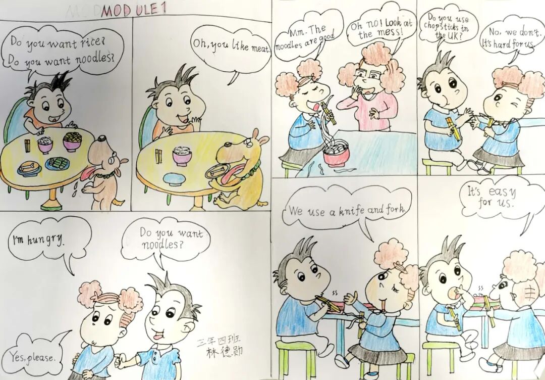 三至六年级的同学们积极参与,发挥自己的想象力,动手设计出了精美的手抄报,或是图配文的小诗,或是中国传统故事的连环画。一份份精美的作品体现了学生们良好的审美能力和扎实的绘画功底。一笔一画尽显学科精彩。