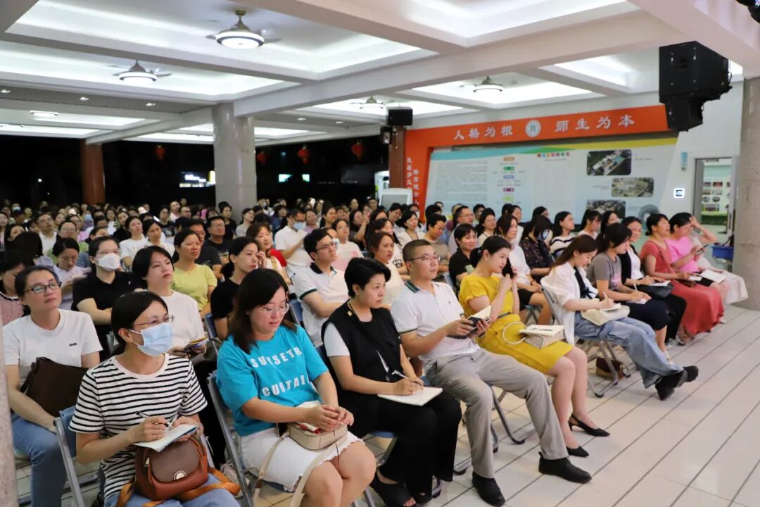 晚上七点,一年级新生家长和老师齐聚一楼大厅小礼堂,共同聆听“同心讲堂”家教讲座《亲子共成长》,主讲人是学校黄加贤校长。活动由校长助理饶燕燕主持。