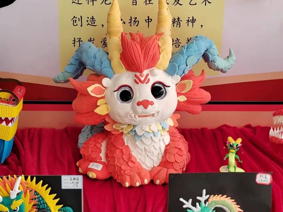 12月27日,经过美术组三位老师一个上午的精心布置,龙腾盛世——龙年美术作品展完美呈现在学校大厅里。同学们的作品摆放错落有致,纸艺、彩泥、绘画不同形式争奇斗艳,有平面的,有立体的,一个个作品色彩鲜艳,活灵活现,神态各异,巧夺天工,令人目不暇接。此次以“龙”为主题的美术作品展同学们抒发爱国情感,培养美好情操,打造了喜气洋洋的节日氛围,喜迎元旦。