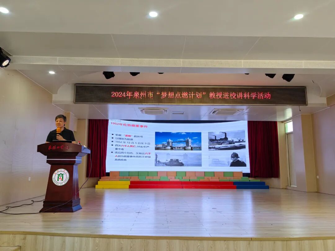 此外,南京大学龙超教授为师生们带来了一场精彩的专题讲座,主题为“什么是干净的空气?”。龙教授从为什么我们需要空气开始,深入讲解了空气的成分以及干净空气的定义。他详细阐述了空气污染的危害和污染物的排放源,并提出了控制人为源污染物排放的有效措施。讲座内容深入浅出,既有理论高度,又有实践指导,让师生们对空气污染问题有了更深刻的认识,也激发了大家保护环境的责任感和使命感。