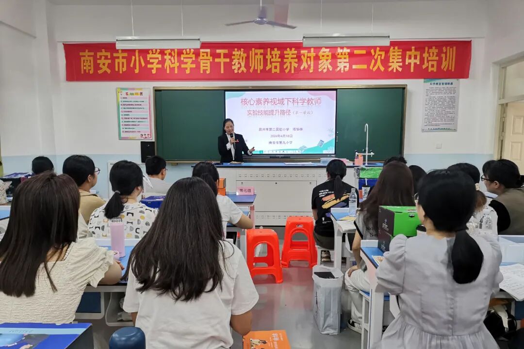 为加强科学教师师资队伍建设,提高小学科学教师实验操作技能。4月17日下午至18日,在南安市教师进修学校组织下,南安市小学科学骨干教师实验操作技能培训活动在第九小学进行。4月18日下午,泉州市第二实验小学陈华珠应邀在培训班作专题讲座,参加本次培训的有南安市小学科学骨干教师培养对象及南安市第九小学教师共100多人。