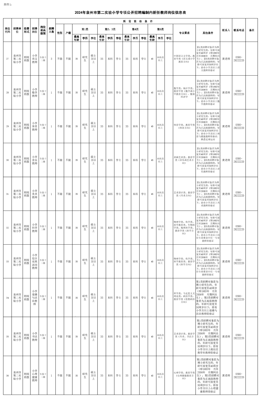 泉州市第二实验小学专项公开招聘编制内新任教师公告