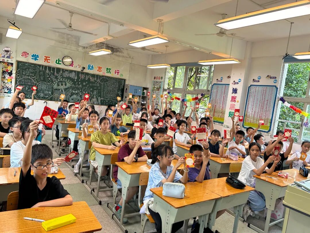 从线上教学转为实地见面,师生们犹如老朋友般亲切,教室里洋溢着一片欢声笑语。倪老师还为五年二班的同学们带来了由泉州市第二实验小学五年一班同学们亲手写下的祝福卡片。收到诚意满满的祝福,同学们难掩心中的喜悦与脸上的笑意。“5G+”专递课堂在两个班级的学生之间搭建起一座“心桥”,有效促进学生们共同学习和进步。