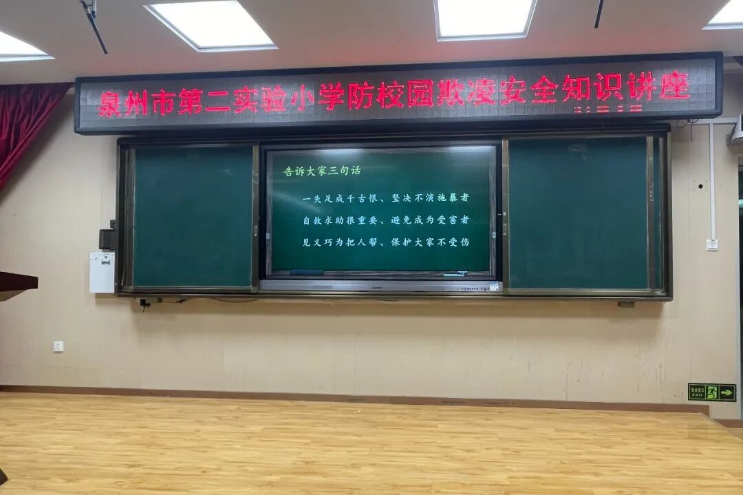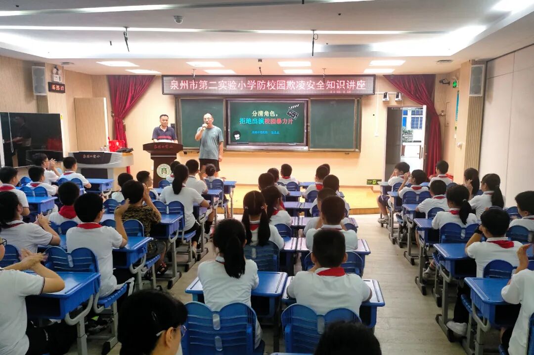 泉州市第二实验小学历来重视防校园欺凌安全宣传教育工作,经常邀请公安机关、检察机关、司法机关的专业人员到校开展防校园欺凌安全知识宣传活动,进一步提升同学们防校园欺凌的意识以及防范的技能。