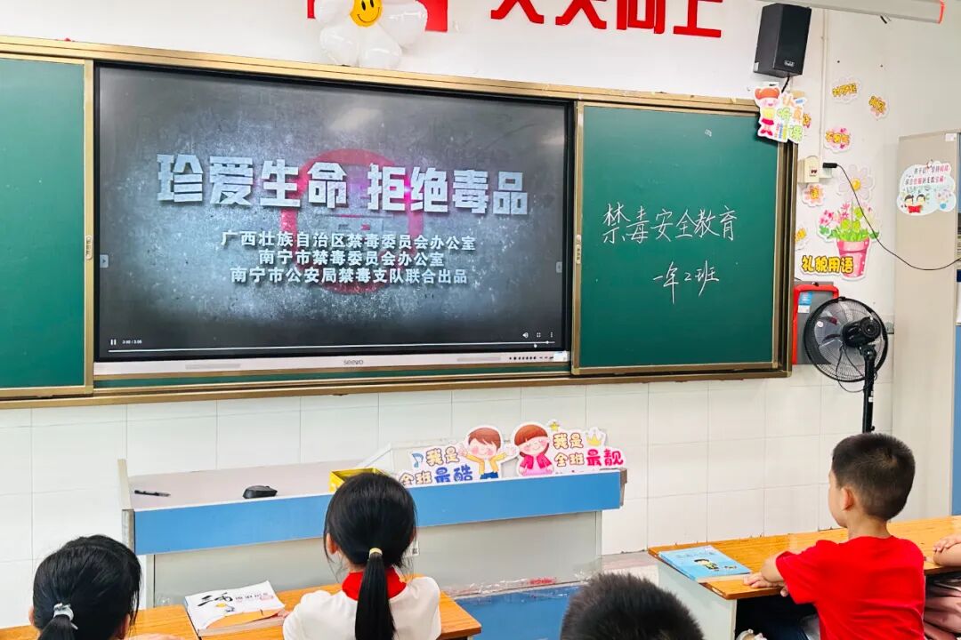 学校LED屏幕滚动播放禁毒安全公益宣传片,进一步向家长学生开展禁毒安全知识宣传营造良好的宣传氛围,全民禁毒。