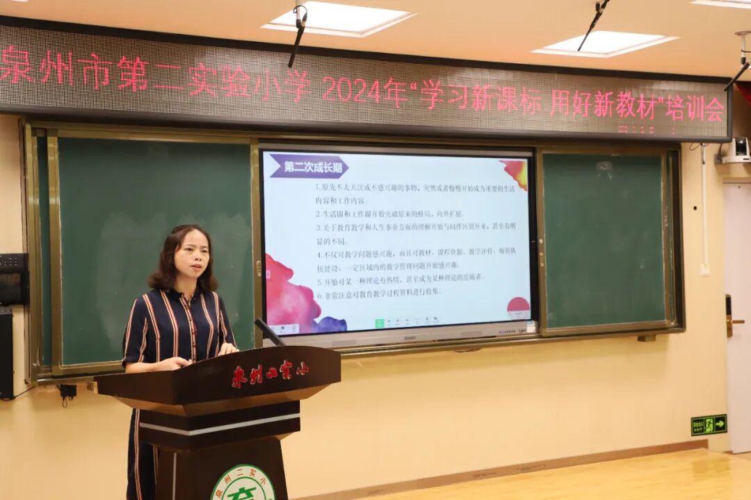 8月30日上午,泉州市第二实验小学开展“学习新课标 用好新教材”的校本教研活动。活动首先由陈巧亮副校长带来培训讲座《学习新课标 用好新教材》,随后分三大教研组进行学科培训分享活动。