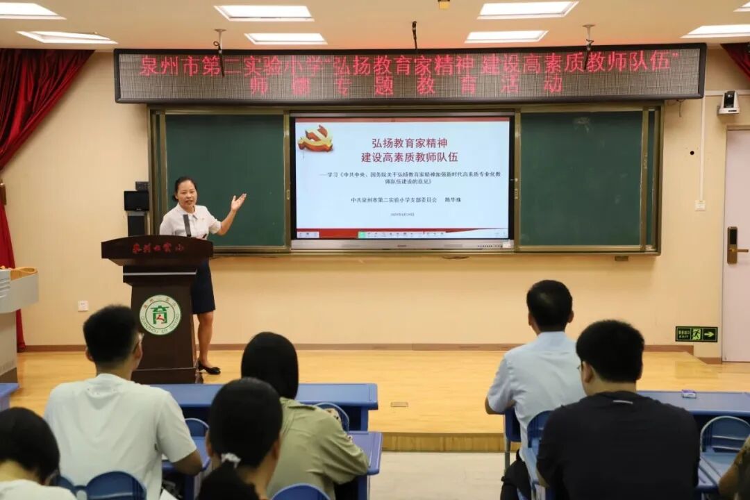 8月29日,泉州市第二实验小学举办以“弘扬教育家精神,建设高素质教师队伍”为主题的师德专题教育活动。活动由党支部副书记陈华珠主持。