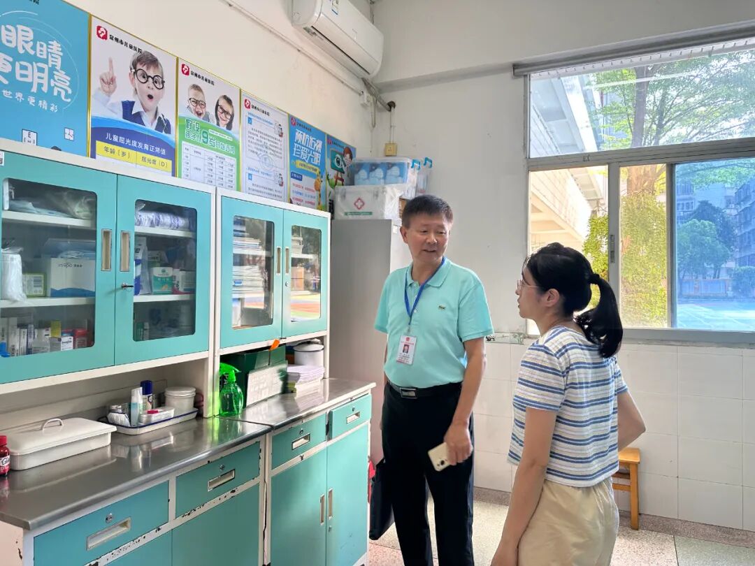 黄志强督学在学校党总支书记黄加贤、陈巧亮副校长、王思业副校长的陪同下,巡视校园,深入课堂,随机听课,查看了学校的课表、课后服务方案、作业公示栏、学生健康体检情况,全面了解学校在“双减”常态化实施工作方面的具体举措与成效。最后黄督学与专职心理健康老师进行交流,了解学生心理测评情况及学生心理疏导情况。