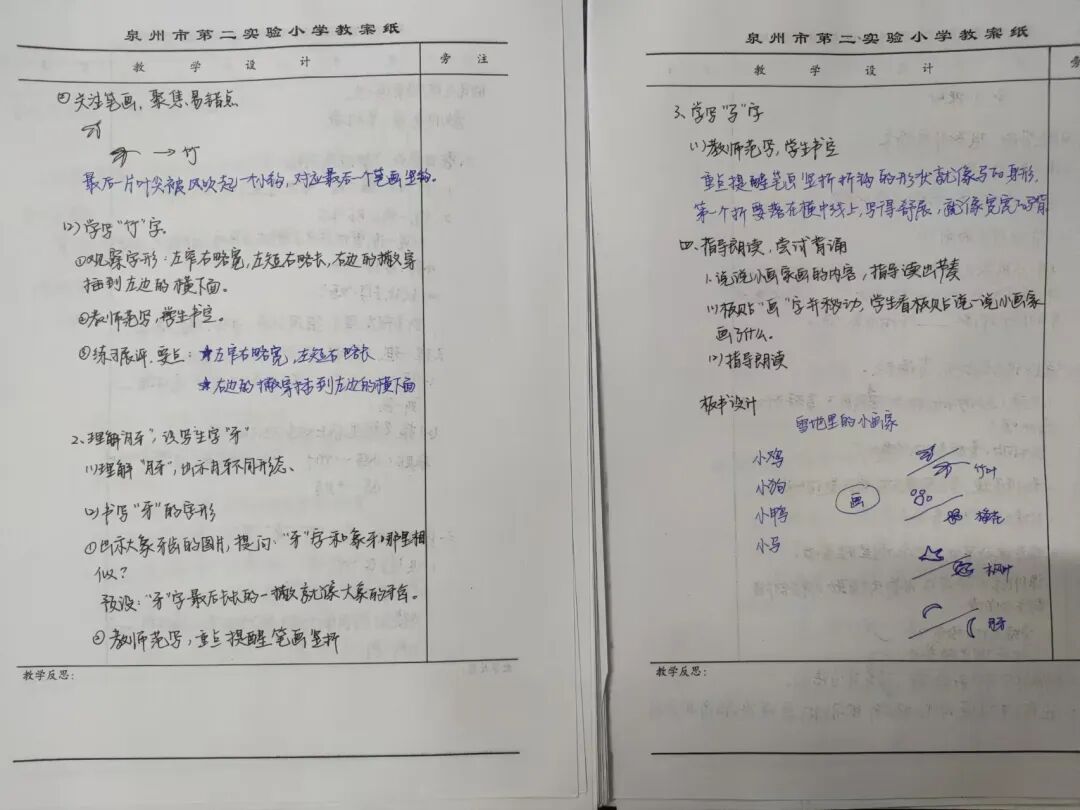 “台上一分钟,台下十年功”。老师们在撰写教案时,以新课程标准为指导,践行“以学生为中心”的教育理念,教学目标清晰明确,教学重难点突出,教学环节设计规范,板书美观、简洁,富有创意。