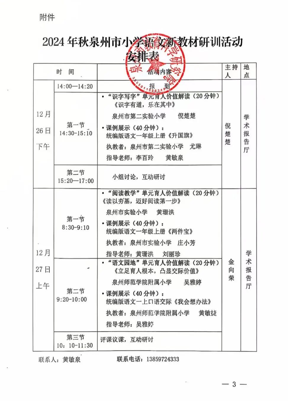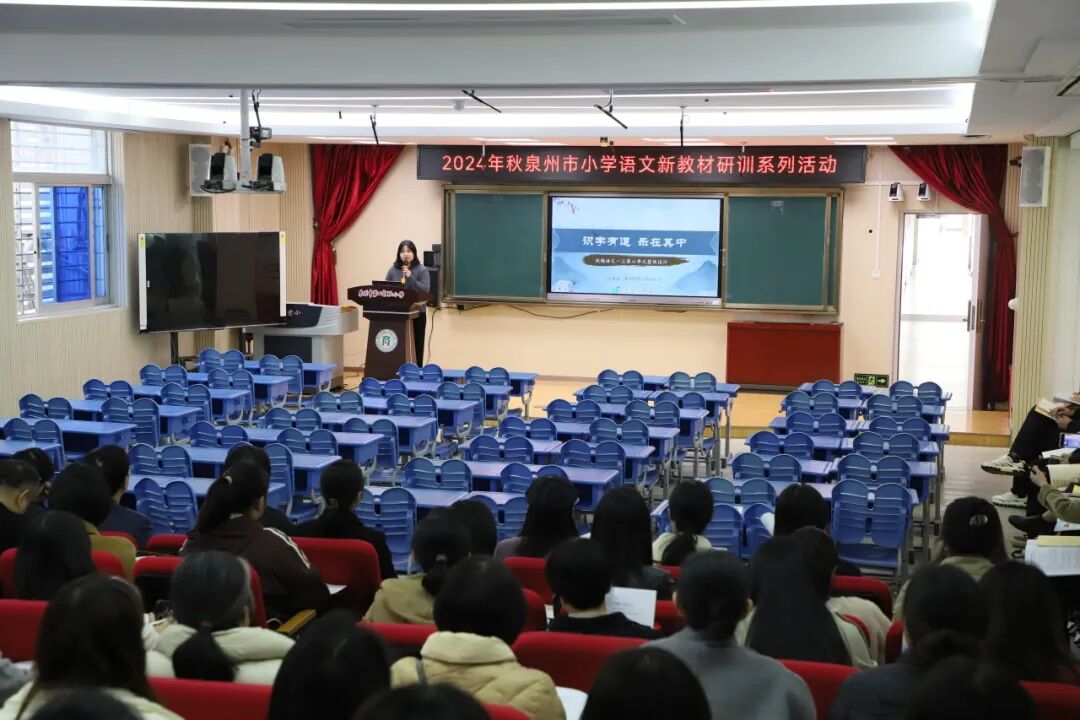 四时俱可喜,最好“研训”时。为全面落实《义务教育语文课程标准(2022年版)》及新修订的统编小学语文教材理念,2024年12月26日至27日,泉州市小学语文新教材研训系列活动(三)在泉州市第二实验小学举行。此次活动由泉州市教育科学研究院初等教育与学前教育教学研究室陈星主任亲自组织与指导,全市各县市语文教研员、骨干教师及课题研究组成员近200名共同参与。