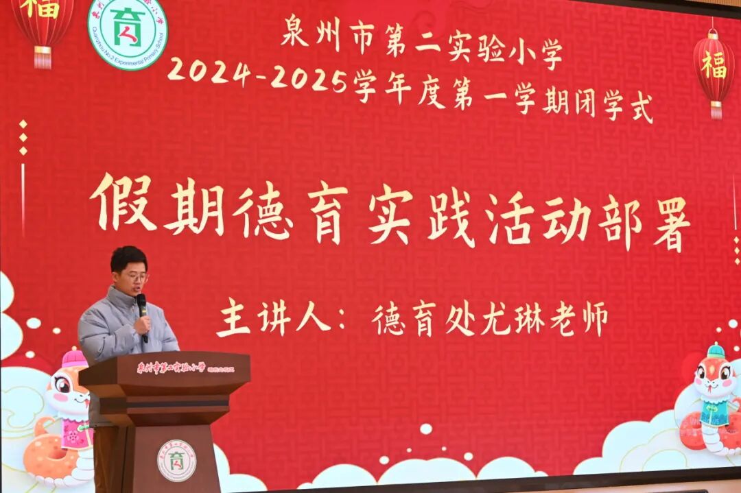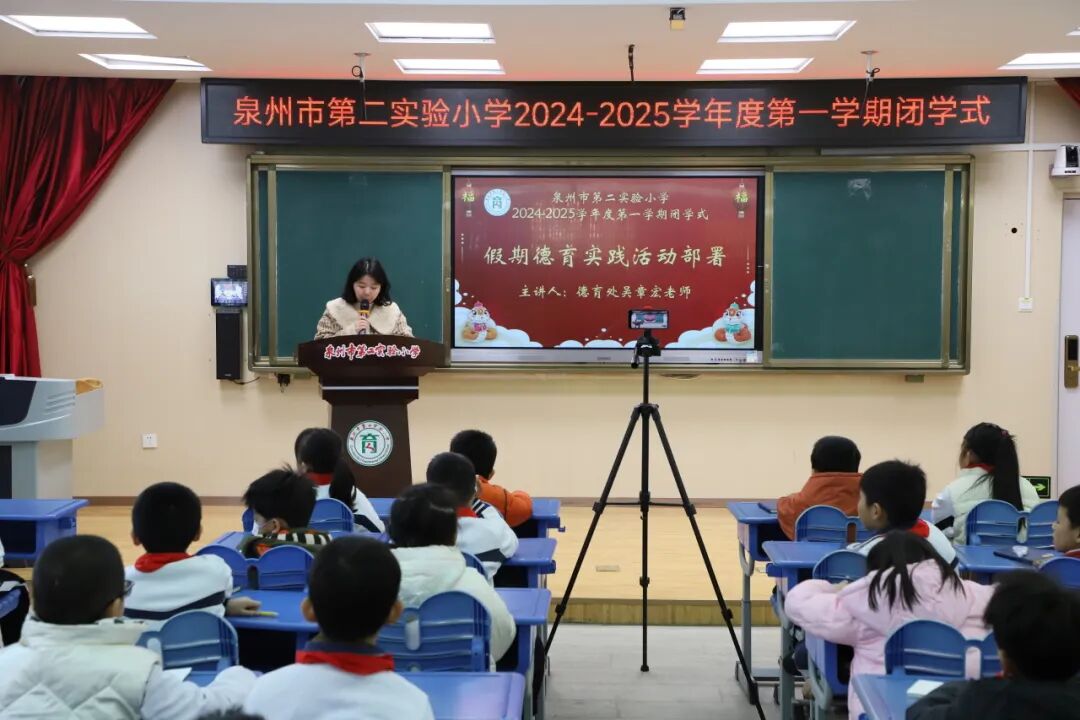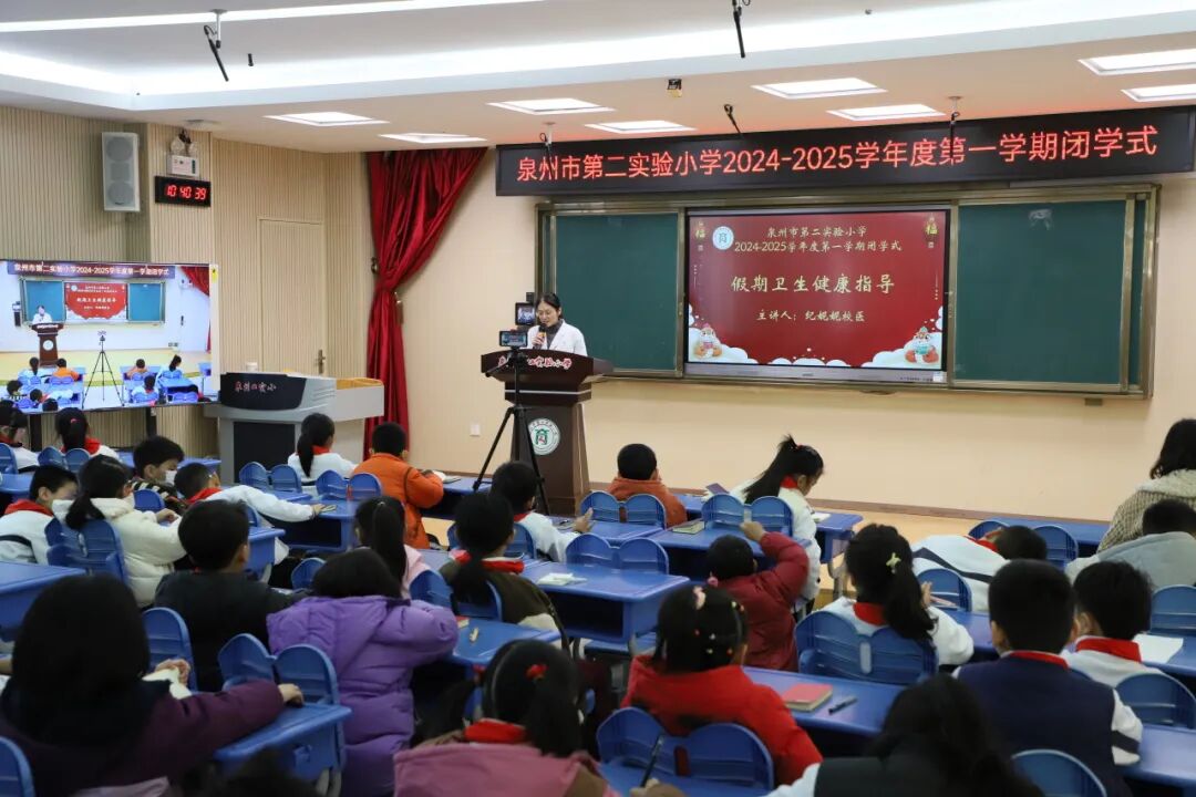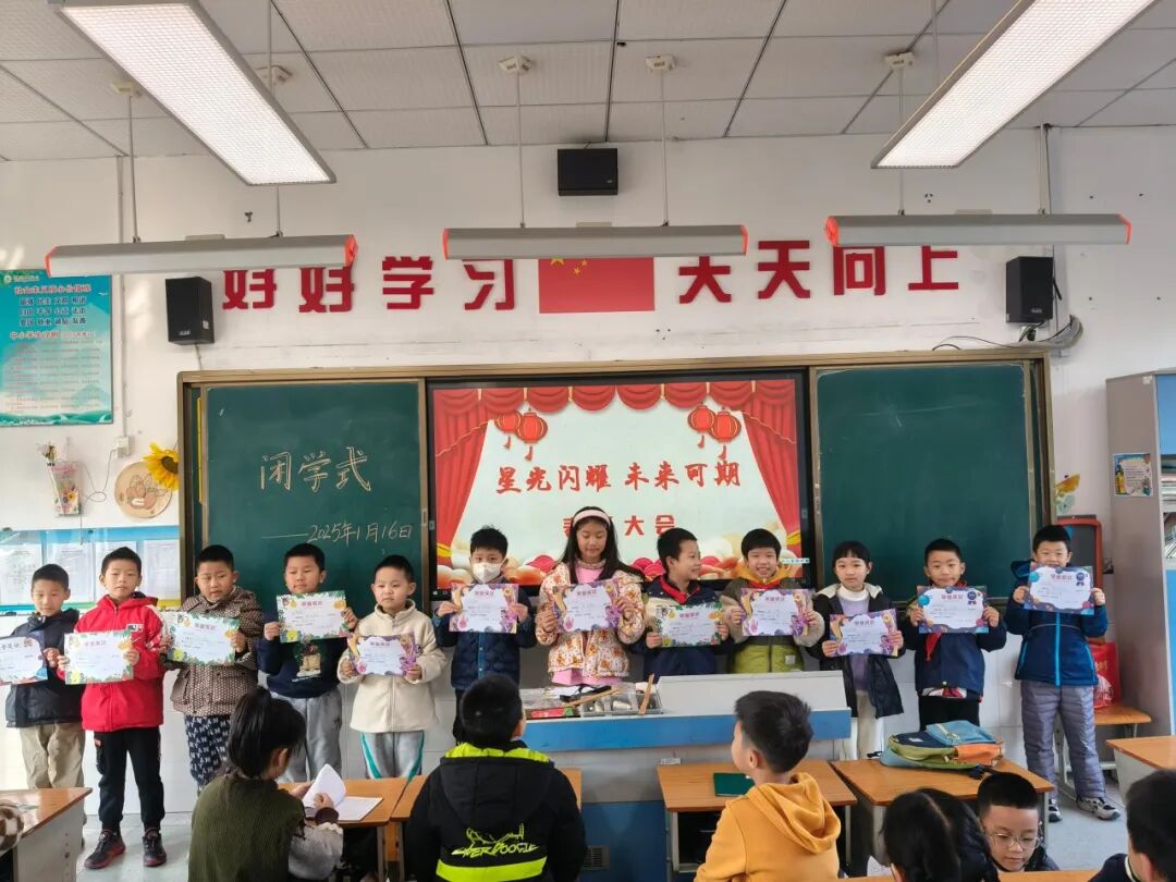 闭学式在师生们热烈的掌声中结束,各班回到教室后进行班级表彰以及假期生活布置等活动,确保每位学生度过一个快乐而有意义的寒假。