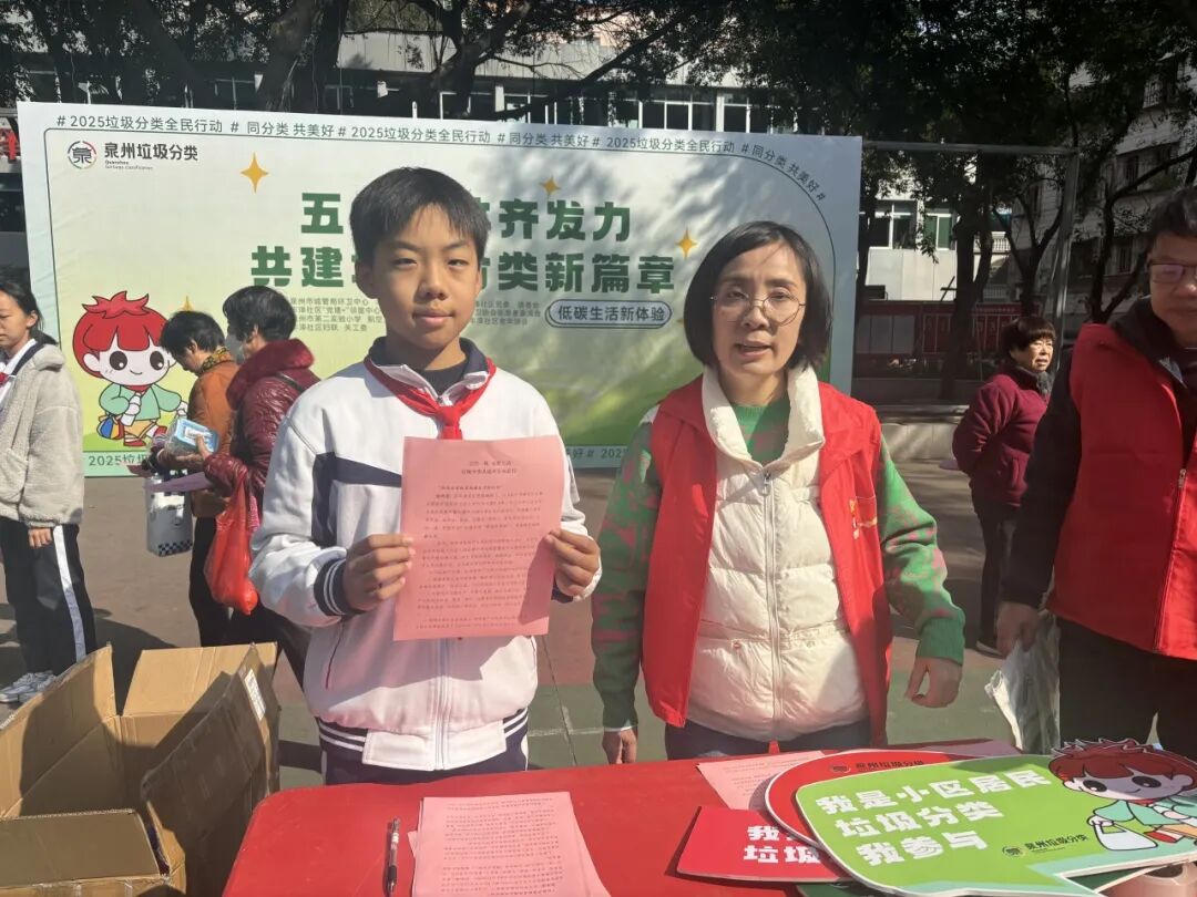 活动中,同学们积极报名参与签署《垃圾分类共建共享承诺书》,承诺保护环境要从自身做起,养成正确投放垃圾的良好行为习惯,共同打响这场“绿色持久战”。