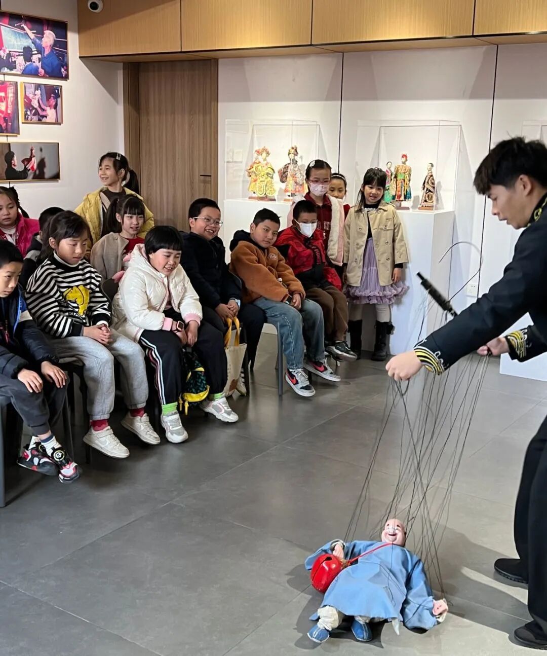 活动伊始,队员们观看了一场精彩绝伦的提线木偶剧表演,并了解其背后凝聚的传承故事、文化蕴含与独特魅力。在观赏有趣的木偶剧表演后,非遗老师带领队员们体验与互动。几位“小小木偶师”在老师的指挥下,亲身体验了非遗文化的独特趣味与魅力。
