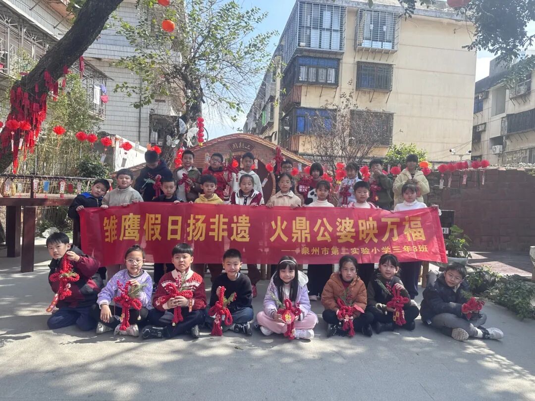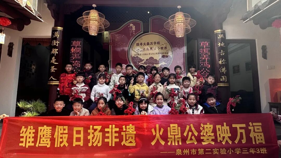 蛇年新春到,灵蛇献瑞来。2月11日上午,泉州市第二实验小学三(3)中队雏鹰小队开展了一场别开生面的研学活动。本次活动以“雏鹰假日扬非遗 火鼎公婆映万福”为主题,旨在让队员们沉浸式体验非物质文化遗产的魅力,传承和弘扬闽南优秀传统文化。
