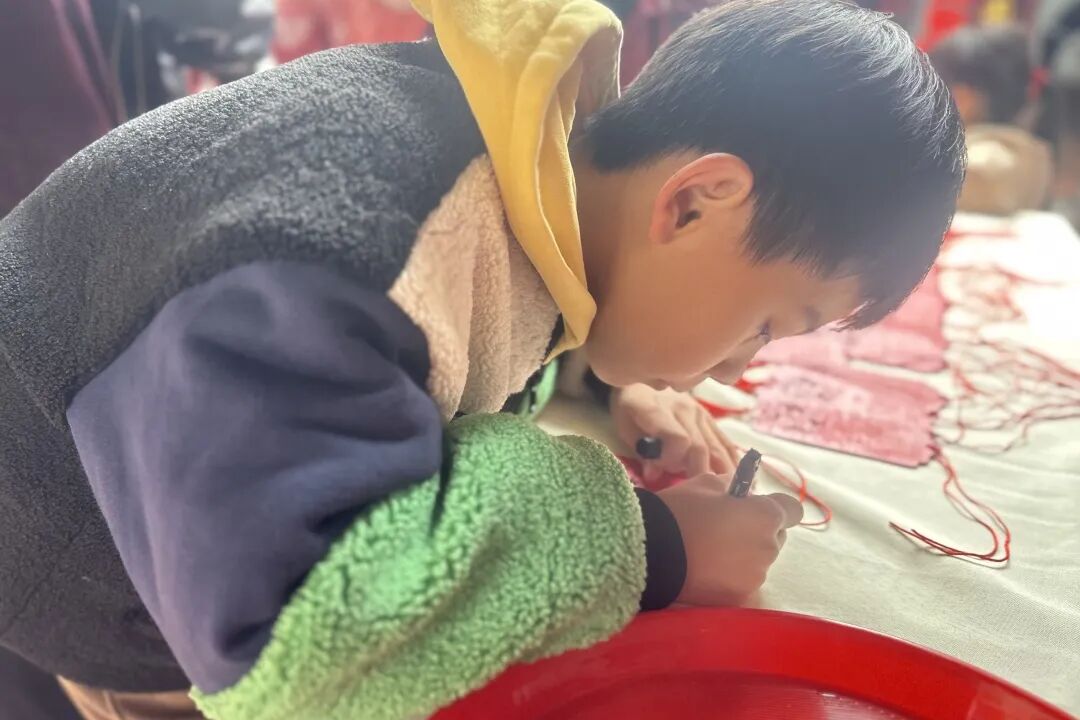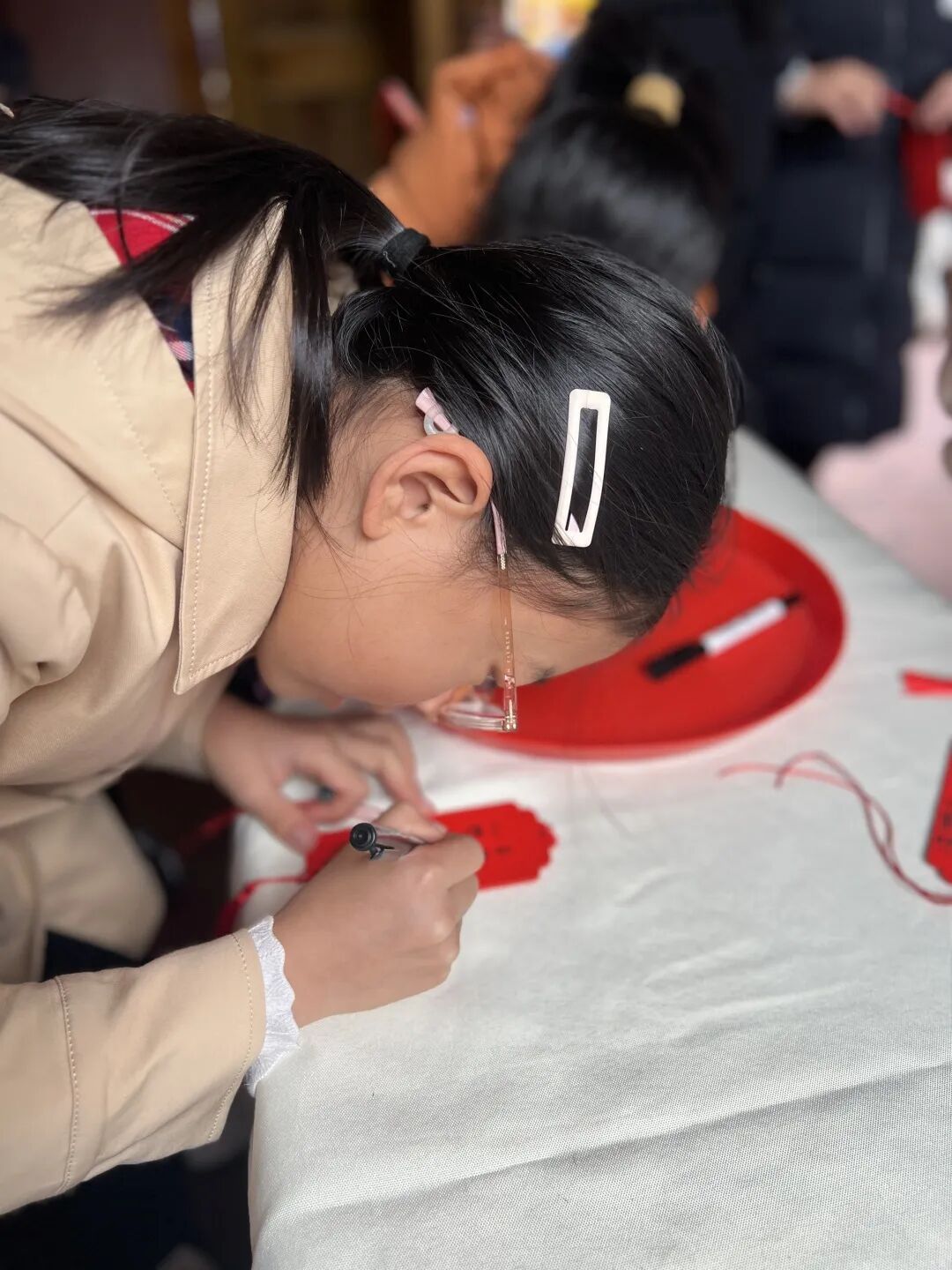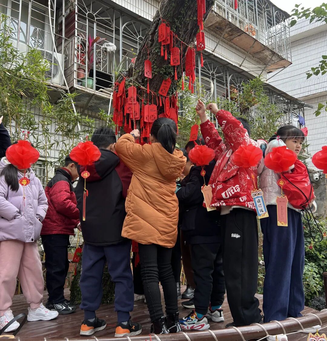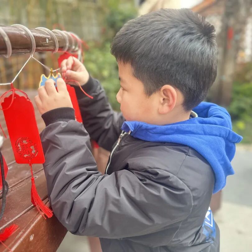 活动伊始,队员们怀着满心的好奇与期待,齐聚在活动场地——鲤城区三朝巷三朝园。现场布置充满浓厚的闽南年俗氛围,红色的灯笼高高挂起,彩色的元宵灯谜悬挂屋梁,仿佛让人穿越到了古老的时光之中。他们迫不及待地在红色的许愿牌上一笔一画郑重地写下蛇年新春的祝福,并悬挂在许愿树上,企盼愿望成真。