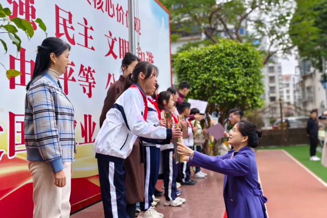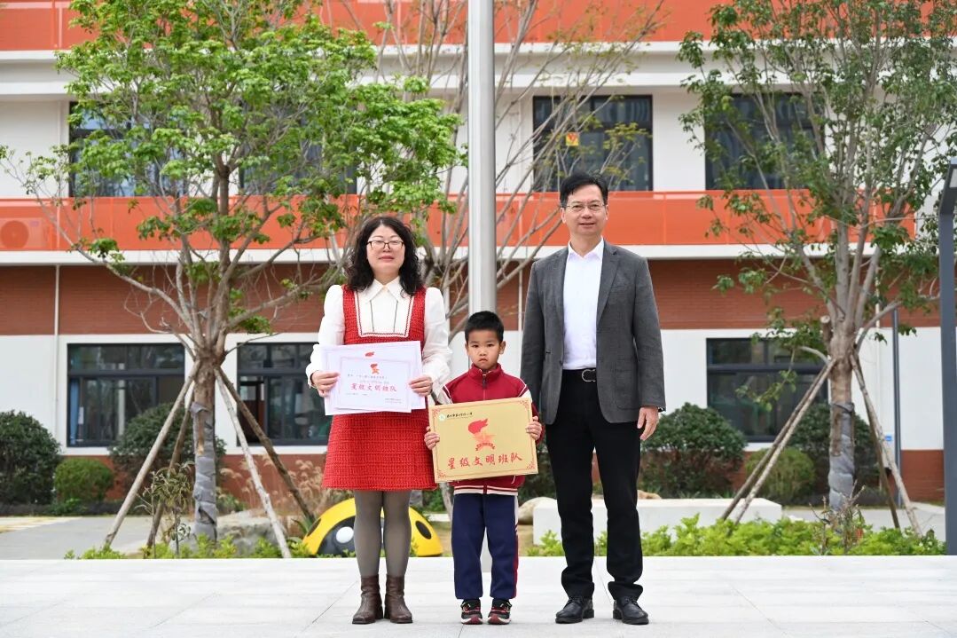 陈华珠副书记、校长助理饶燕燕宣读2024-2025学年第一学期星级文明班队名单,黄加贤书记、李百玲校长、王思业副校长为获奖班级奖牌和证书。受表彰班级的学生代表发表了获奖感言,激励同学们不骄不躁,继续奋发图强,在今后取得更加优异的成绩。