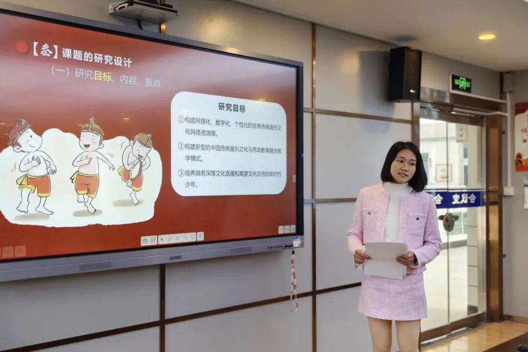 李璐璐老师进行《“互联网+”背景下中国传统音乐文化与思政教育融合的创新路径研究》课题的开题报告,深入探讨在互联网时代,如何将中国传统音乐文化与思政教育有机融合,挖掘新的教育模式与创新路径。黄敏泉老师就《新课标视域下小学语文跨学科主题学习的有效性评估与优化路径探索》这一课题进行开题报告,明确指出该课题致力于解决当前小学语文跨学科学习中存在的评估标准模糊、实践效果参差不齐等问题。