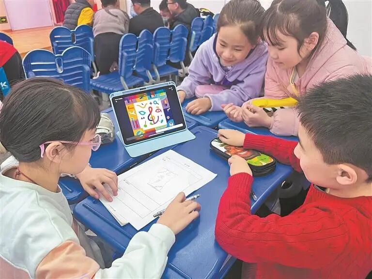 学生们借助AI工具生成图案,激发创新思维,拓宽思路。