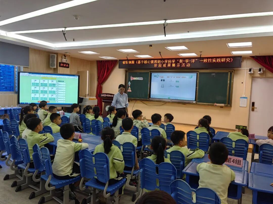活动中,浙江省教育厅教研室小学科学教研员喻伯军专家通过视频解读新课标“学段贯通、素养筑基”等四大特征,结合案例剖析教学评一体化策略;课题组成员许丽玲老师汇报课题阶段性成果,分享大单元情境设计、课堂三步教学法及资源开发等创新成果,展现以评促学的深度探索。