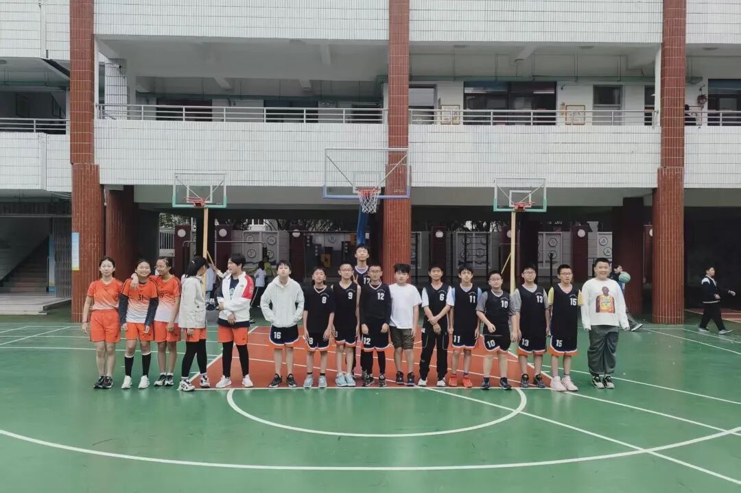 赛场上,队员们迅速进入状态,他们灵活跑位,积极拼抢篮板,运球、传球、投篮一气呵成。场边的啦啦队也同样热情高涨。他们挥舞着自制的加油牌,为参赛选手呐喊助威,“加油!加油!”的声音响彻校园。班主任和体育老师们也始终陪伴左右,不仅为球员们提供战术指导,还时刻关注着大家的安全。